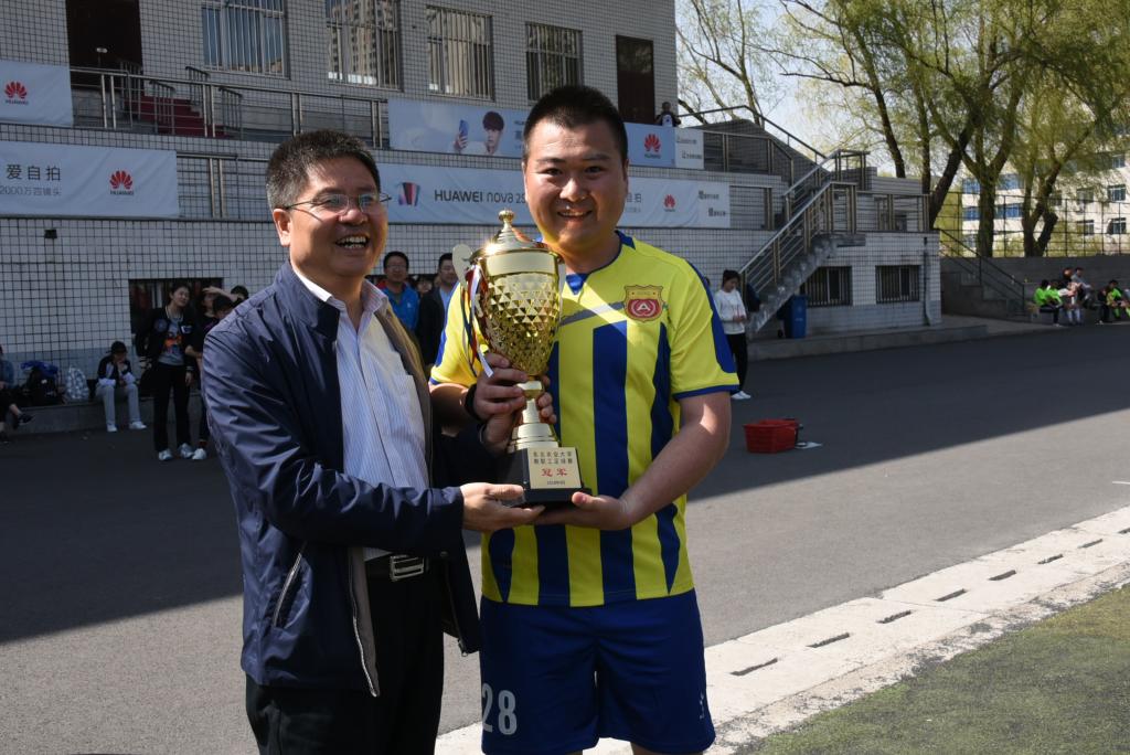 4月27日,由校工会主办的“2018年东北农业大学教职工足球赛”顺利完成各项日程圆满落幕。本次比赛历时两周,共有8支队伍参赛。校工会主席解宗军,校工会常务副主席董明、副主席李巍等出席闭幕式,并分别为获奖单位和最佳射手颁奖。