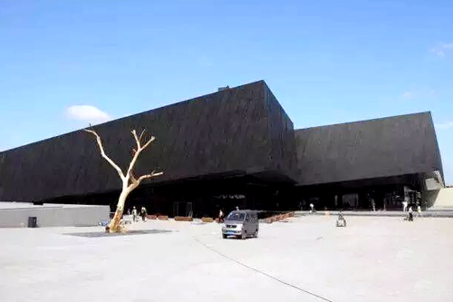 新馆建于七三一部队遗址东侧,造型为不规则方形,主体呈暗黑色,在周边暖色民居的映衬下,显得突兀抢眼。馆前立有两株被剥掉树皮的死树,枝干扭曲如垂死挣扎的人性,具有很强的视觉冲击力。新馆的建筑设计方案简称“黑盒”,外型模拟记录飞机飞行数据的黑匣子,寓意真实记录“七三一”部队的反人类罪行。新馆内共展出关于“七三一”部队进行细菌战的10050件文物等罪证,真实再现了日本军国主义践踏人类文明底线、野蛮杀戮中国人民的历史铁证。