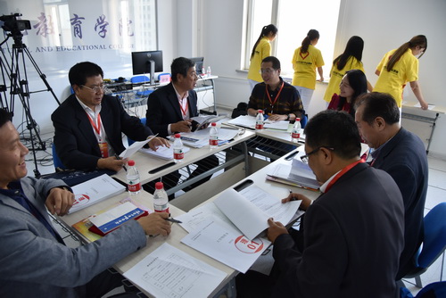 本次大赛参照国家和我省高校青年教师教学竞赛要求进行,经过课堂教学,教学设计和教学反思三个环节的现场评。评委组成员由教务处聘请我校国家、省级教学名师和知名专家担任,每个竞赛学科由7名评委组成。金长城教授担任文科组评委组长,魏湜教授担任理科组评委组长。评委现场为参赛选手进行打分。比赛紧张有序,选手们在监督组的全程监督下公平、公正的完成竞赛各环节。