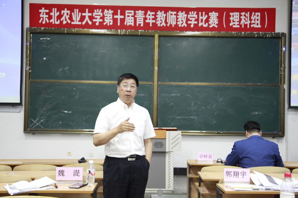 5月24日,东北农业大学第十届青年教师教学大赛在教学楼圆满结束。校党委副书记马宏坤亲临现场观摩比赛。本次比赛分文科组和理科组同时进行,共有20名选手参赛。文科组和理科组评委会成员分别由9人组成,每组设组长一名,分别由金长城教授、魏湜教授担任。评委分别来自农学、动医、工程、文法、食品等相关专业。
