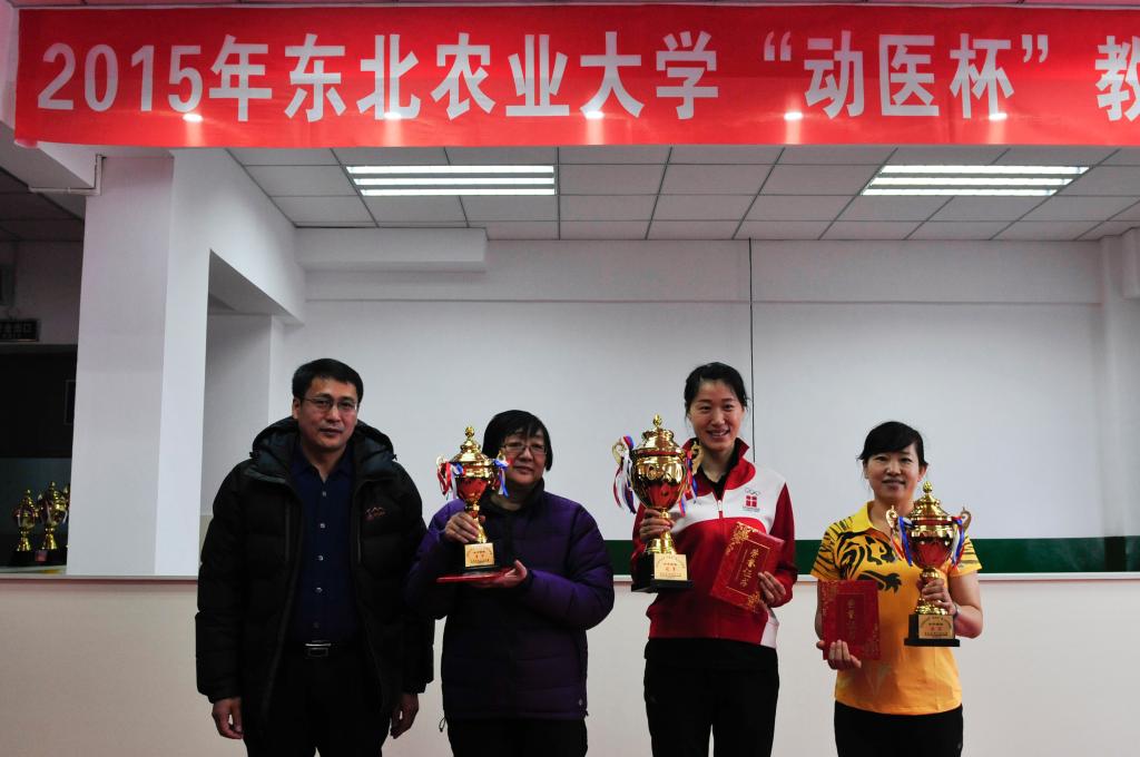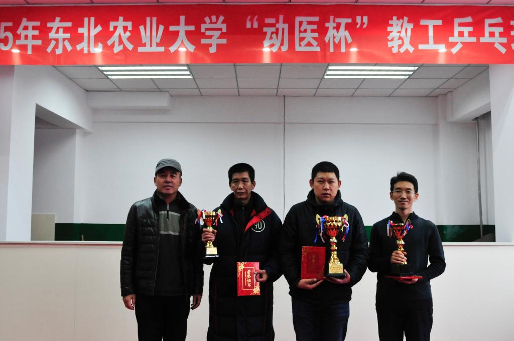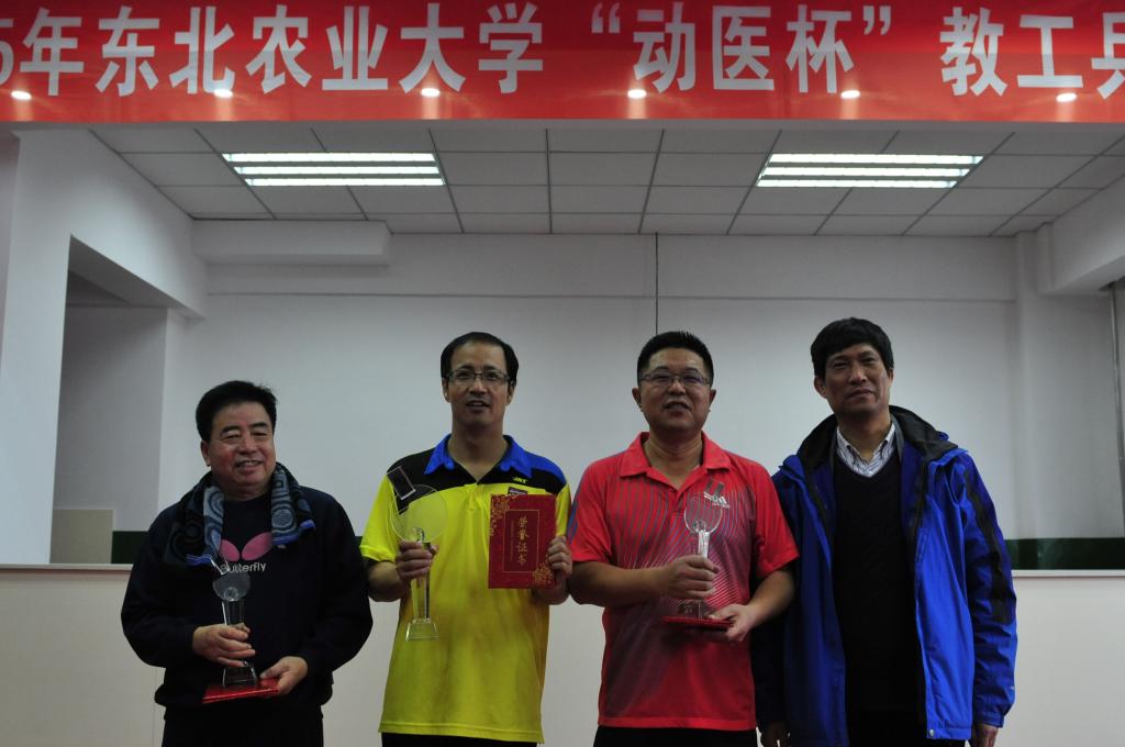 本次比赛由校工会主办,动物医学学院承办,共有13个单位近80名参赛选手参赛。比赛设有男子团体甲级组、男子团体乙级组、女子团体组和男女单打。经过激烈角逐,最终,党政机关一队、电气与信息学院和农学院分别获得男子团体甲级组第一、二、三名;水利与建筑学院、工程学院和党政机关二队分别获得男子团体乙级组第一、二、三名;图书馆、农学院和电信学院分别获得女子团体比赛第一、二、三名;男子单打比赛第一、二、三名分别由周华、衣春生和朱海明获得;薛晓萌、李靖、姜丽娟分别获得女子单打比赛第一、二、三名。