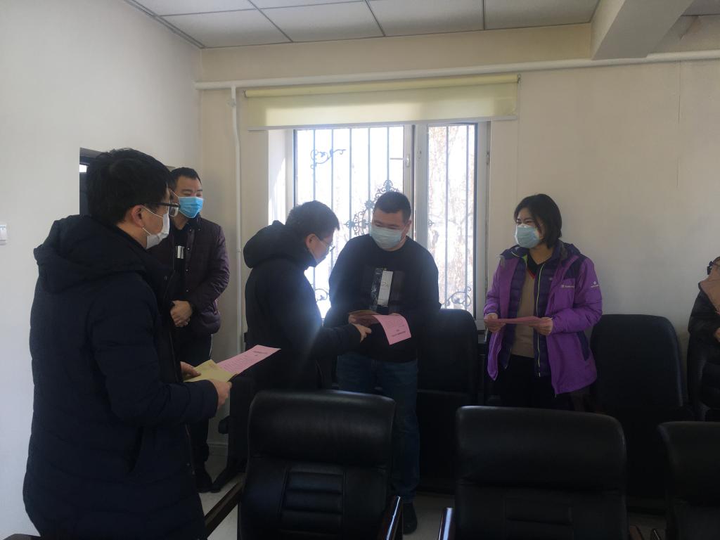 2月25日上午,校工会主席解宗军代表学校工会对新型冠状病毒肺炎疫情防控开展以来,一直坚守一线工作岗位的工作人员代表进行了现场慰问,为大家加油鼓劲。校工会副主席孙永刚、财务福利部部长梁若冬陪同慰问。