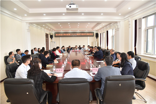 晨曦细雨育桃李,金秋硕果慰园丁。为庆祝第三十六个教师节,9月10日上午,我校召开庆祝第三十六个教师节教师代表座谈会。校党委书记孙登林,部分教师代表以及学校办公室、组织部、宣传部、校工会、人事处、科技处、教务处、研究生院等部门负责人参加会议。会议由校党委副书记兼工会主席庞玉红主持。