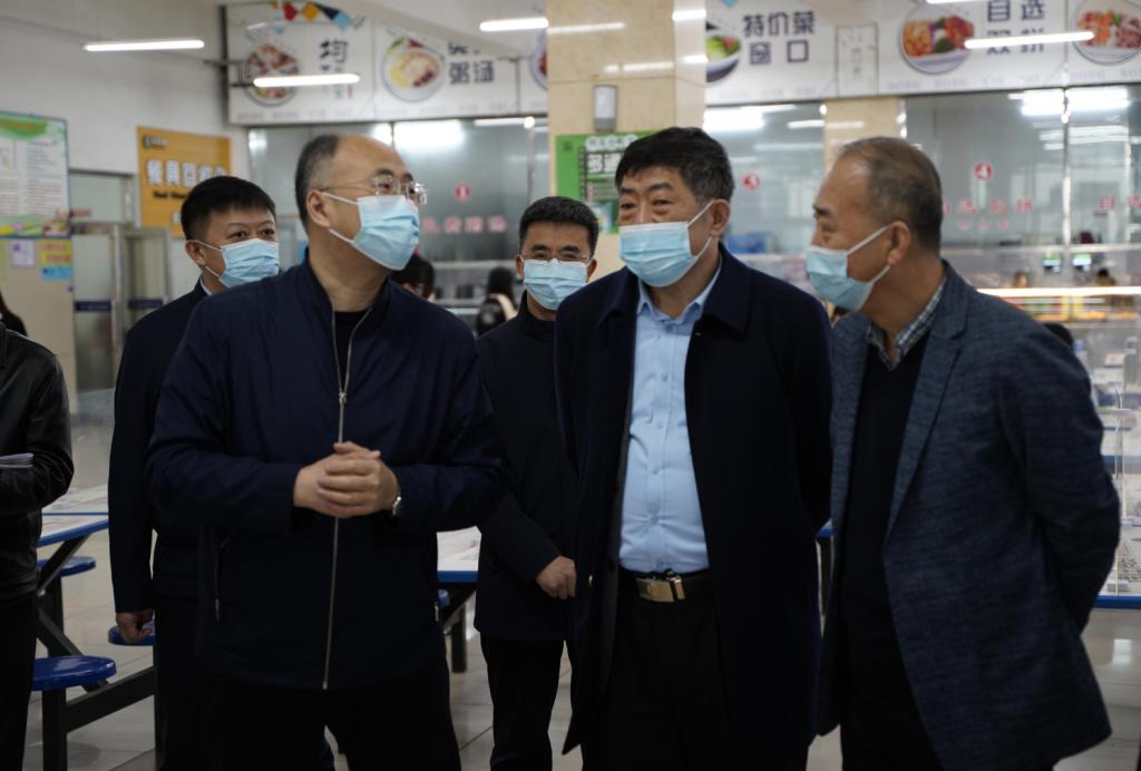 在北三食堂,付强与后勤管理处工作人员进行了交流,详细了解错峰就餐、卫生保障、食物制备、环境消杀等情况,感谢他们校园封闭期间一直驻校工作,精心安排饮食,为师生提供暖心服务,并详细询问了工作人员的生活住宿等情况。