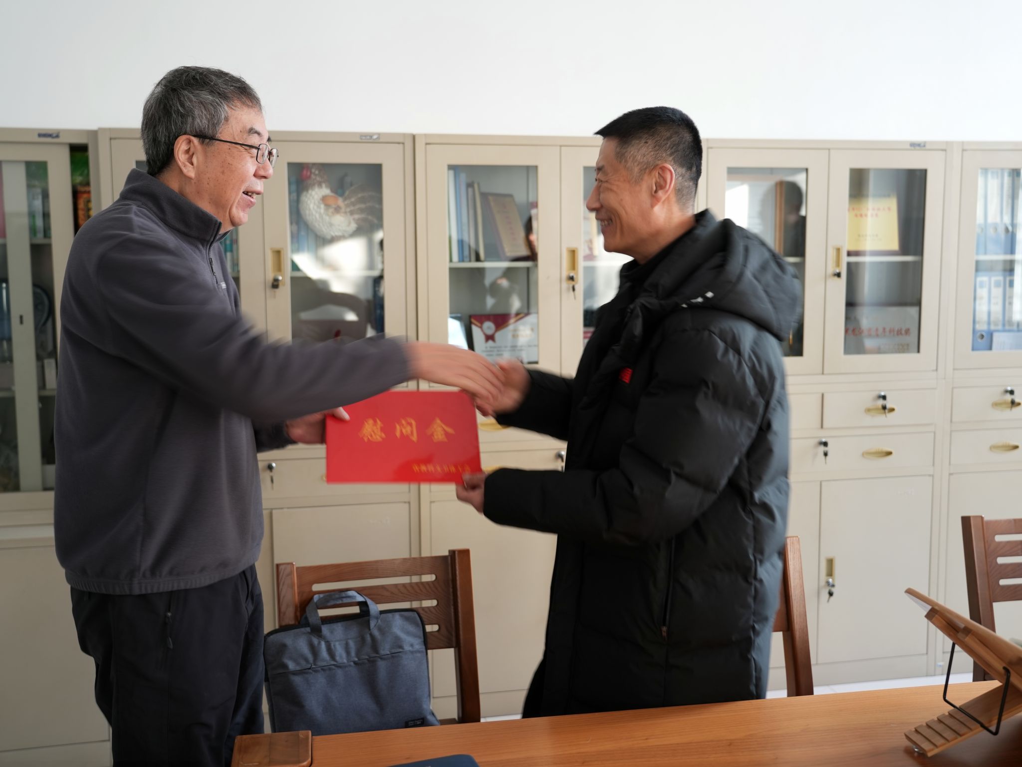 省教科文卫体工会慰问组首先来到我校动物科学技术学院看望慰问全国五一劳动奖章获得者李辉教授,与他亲切交谈,详细了解他的工作、生活及科研情况,并对他一年来的辛勤工作表示感谢,对取得的工作成绩给予赞誉,叮嘱他保重身体,同时为李辉教授送上了新春祝福。