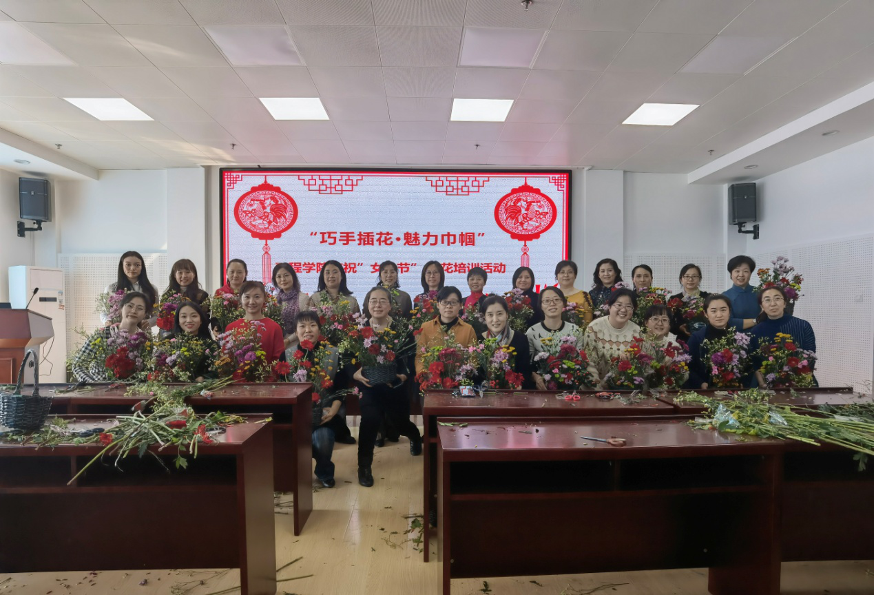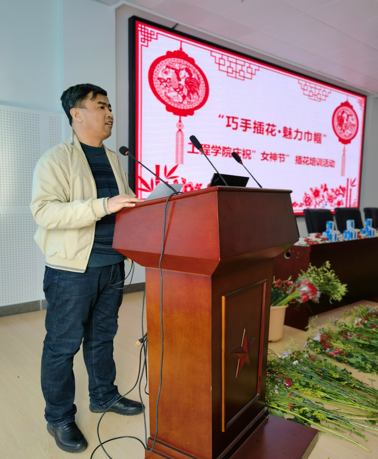 为庆祝第111个“三八”国际劳动妇女节,迎接中国共产党成立100周年,激发学院女教职员工爱岗敬业、建功新时代的热情,以饱满的精神状态迎接新学期工作,工程学院工会精心组织、周密部署,于3月8日12点,在工程学院522会议室举办“巧手插花·魅力巾帼”-工程学院庆祝“女神节”插花培训活动,学院副院长、工会主席臧宏及全体女教职工参会,活动由公维佳主持。