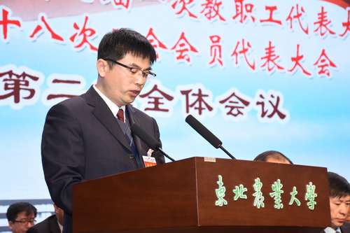 3月2日上午9:30,东北农业大学七届一次教职工代表大会暨第十八次工会会员代表大会第二次全体会议在图书馆一楼报告厅召开,全体正式代表参加会议,会议由校党委副书记马宏坤主持。