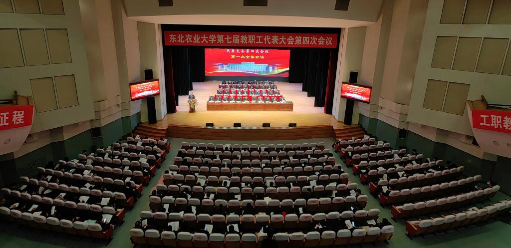 音乐厅会议现场庄严而热烈。主席台上方悬挂着“东北农业大学第七届教职工代表大会第四次会议”的会标,二楼眺台上分别悬挂着“建功十四五 奋进新征程”“忠诚于党的事业 竭诚服务教职工”的横幅。代表们肩负全校师生的重托陆续到达会场,履行认真研究议题、准确反映民意的神圣职责,落实教职工参与学校民主管理和民主监督的权利。
