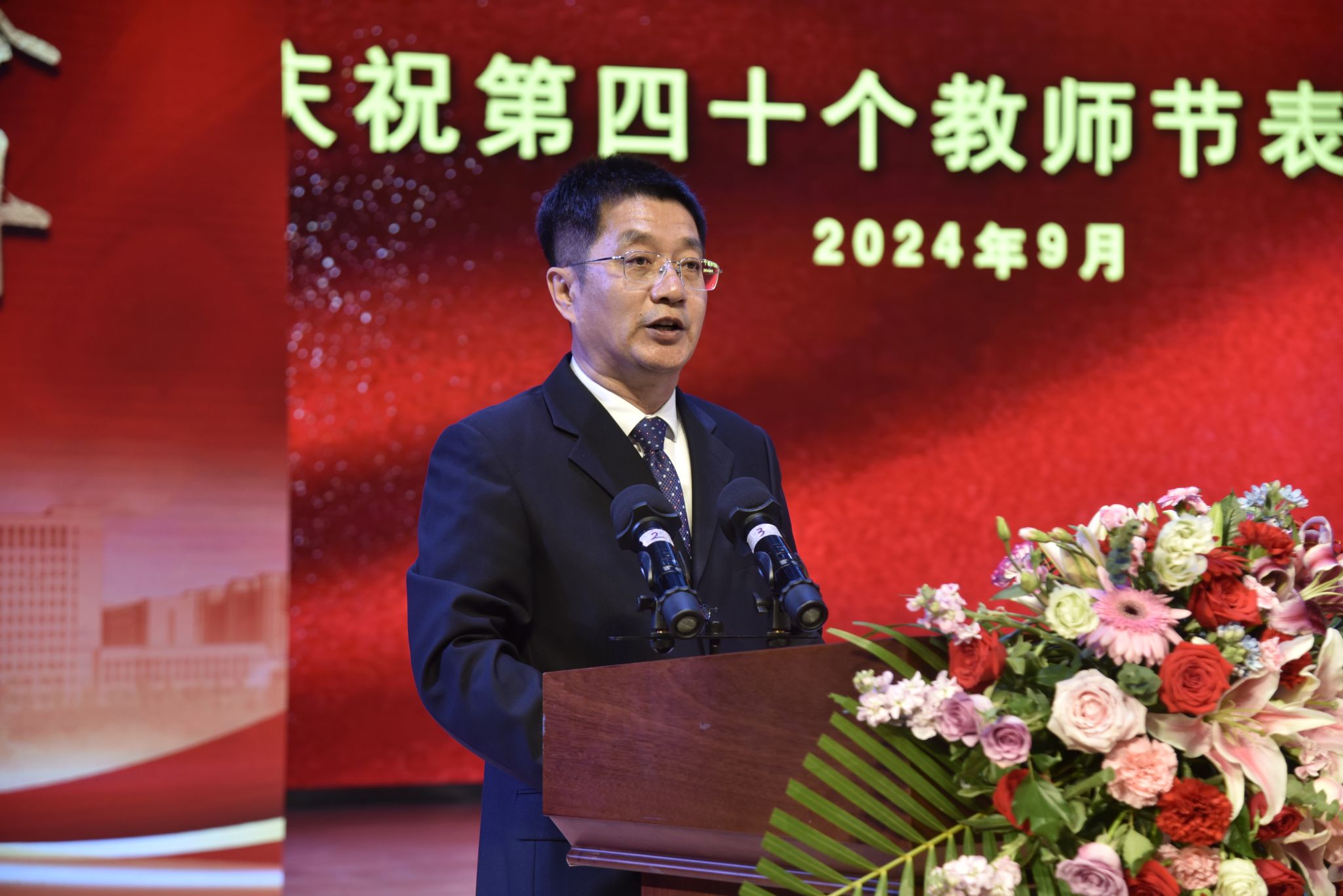 校党委书记、校长付强代表学校向奋战在教书育人一线的全体教师,致以节日的问候,向受到表彰的先进集体和优秀个人,表示热烈的祝贺,向为学校建设发展作出贡献的广大师生员工和离退休老同志,致以崇高的敬意和衷心的感谢。