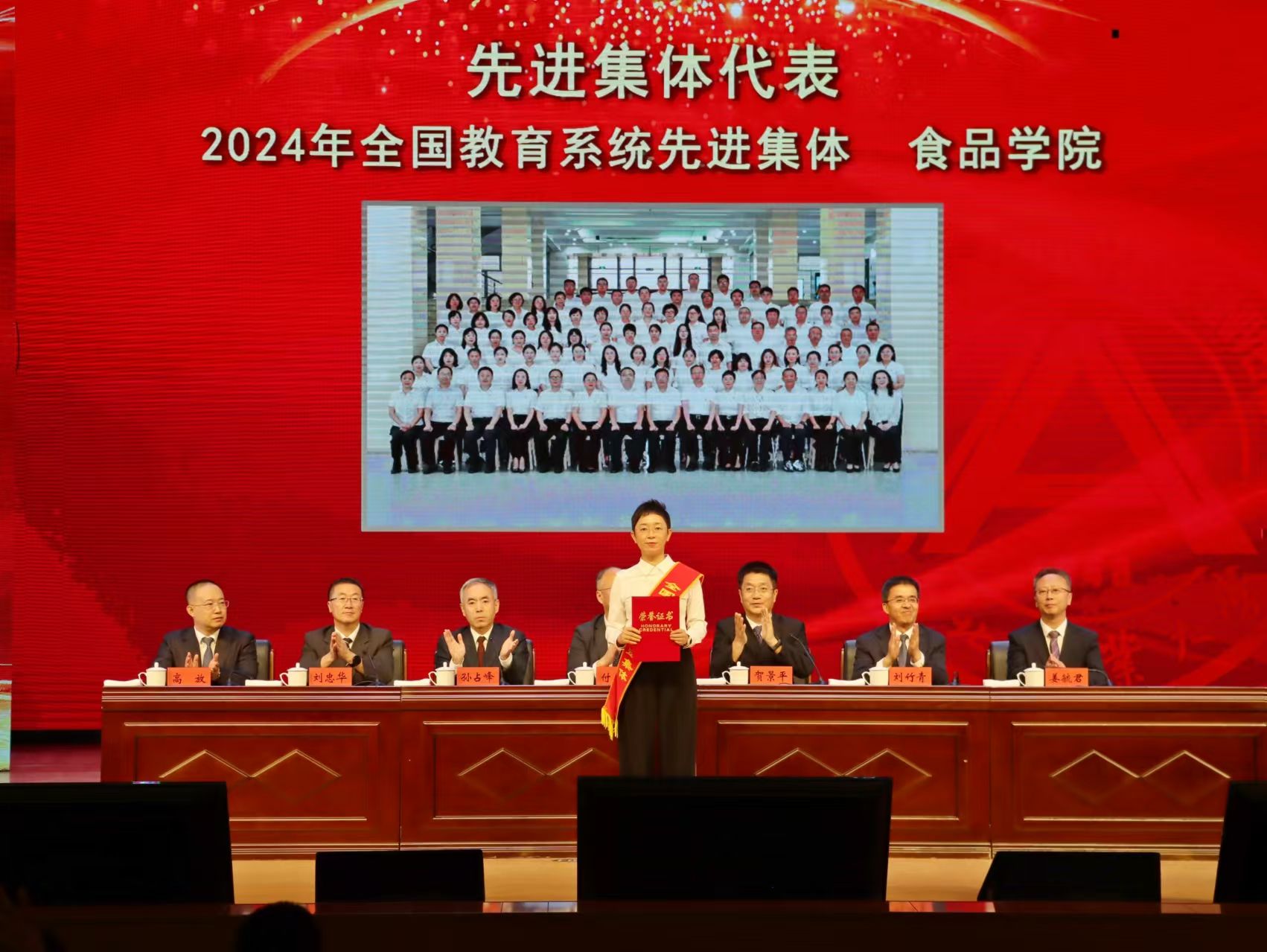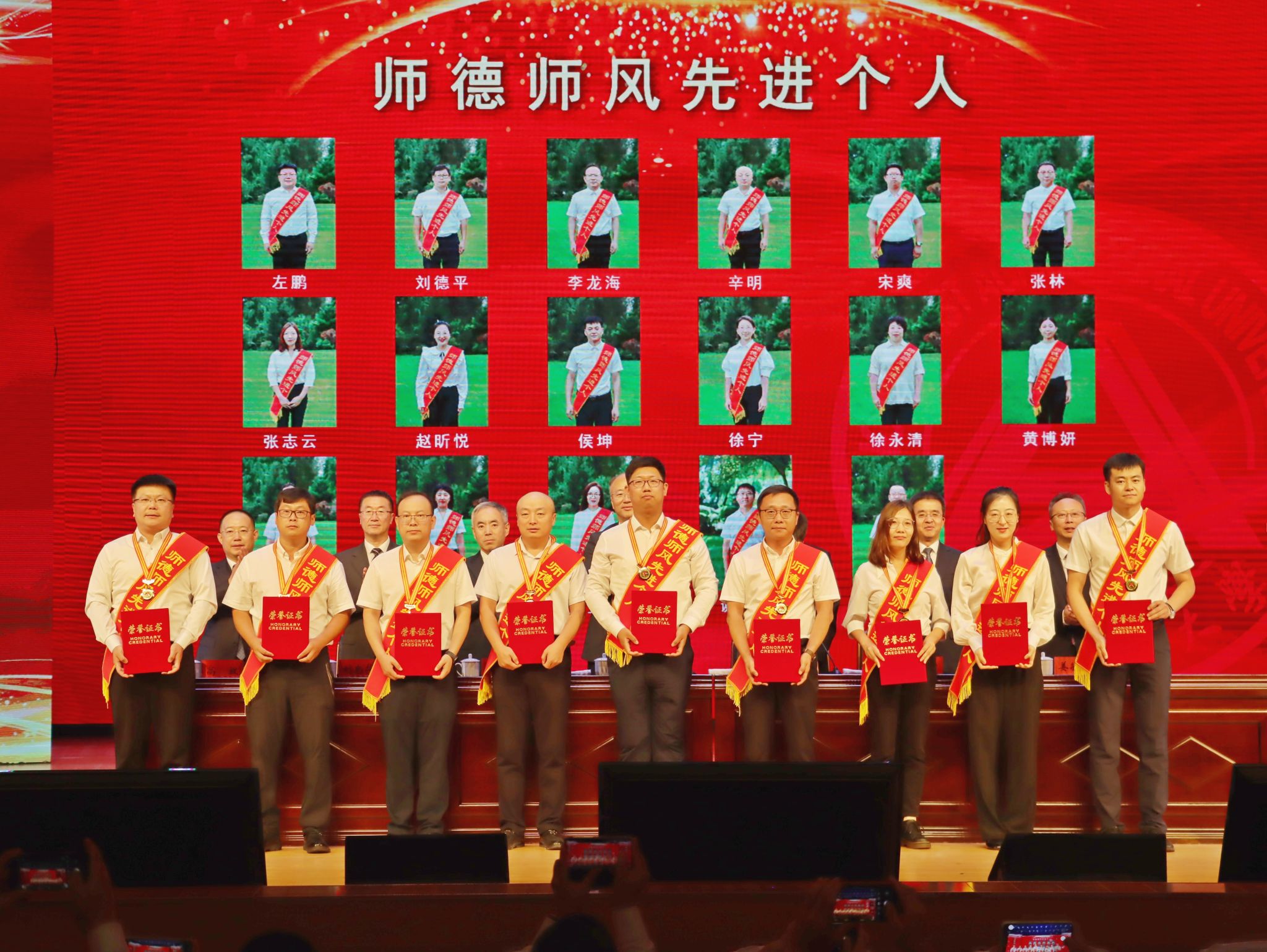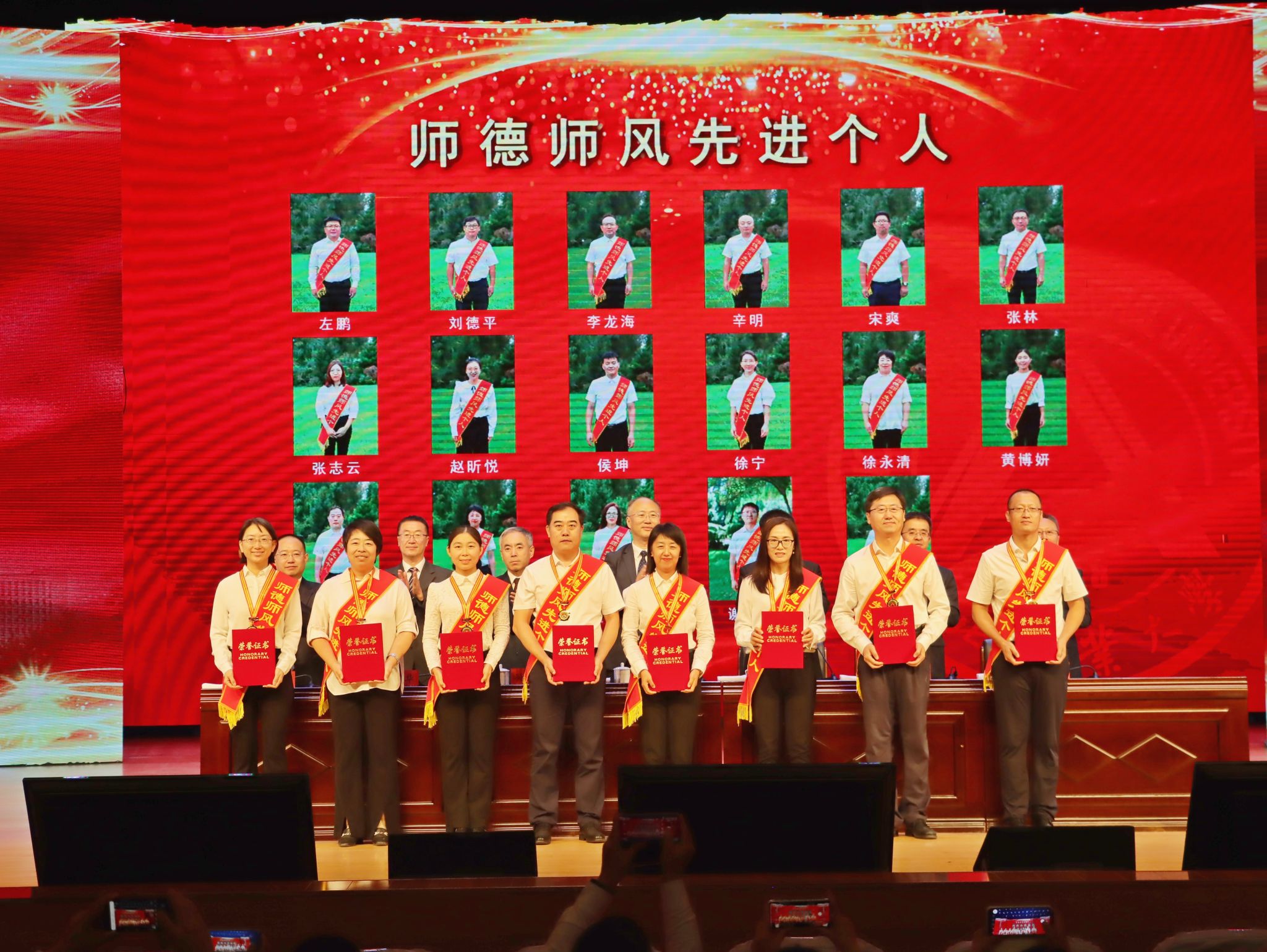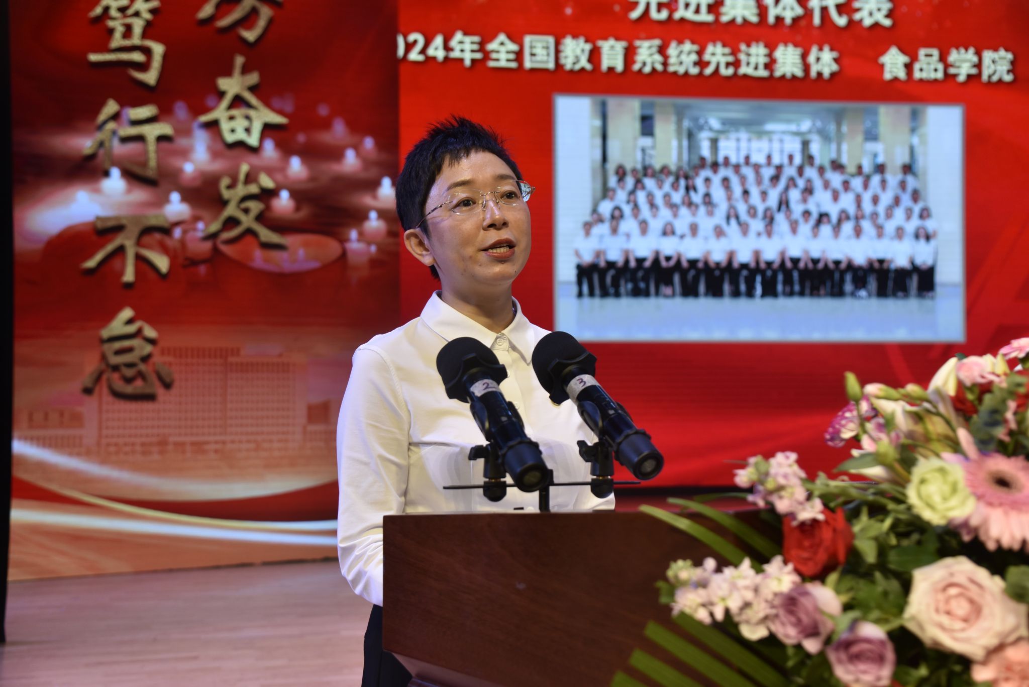 校领导为获奖单位及教职工颁奖。食品学院荣获“全国教育系统先进集体”称号;农学院、食品学院、水利与土木工程学院荣获“省师德先进集体”称号;姜毓君、李辉、武卉昕获“省师德先进个人”称号;杨帆、常缨、许静波分别荣获“省教育系统模范教师”“省教育系统优秀教师”“省教育系统先进工作者”称号;6个集体获“师德师风先进集体”称号;19人荣获“突出贡献奖”称号;24人荣获“优秀教师”称号;17人荣获“师德师风先进个人”称号,20人荣获“优秀教育工作者”称号,45名从教三十年教职工受到表彰。