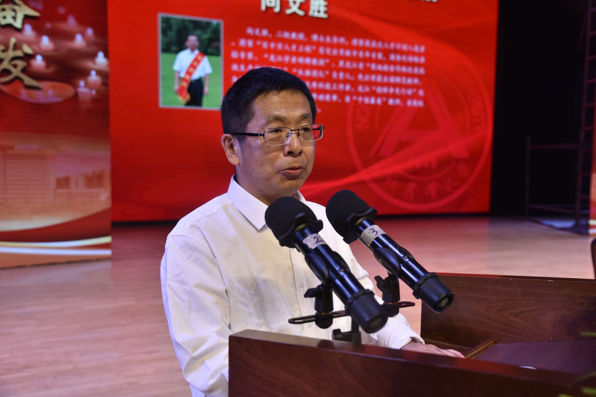 副校长孙占峰宣读《东北农业大学关于表彰师德师风先进集体、突出贡献奖、优秀教师、师德师风先进个人、优秀教育工作者的决定》《东北农业大学关于表彰从事教育工作三十年教职工的决定》。
