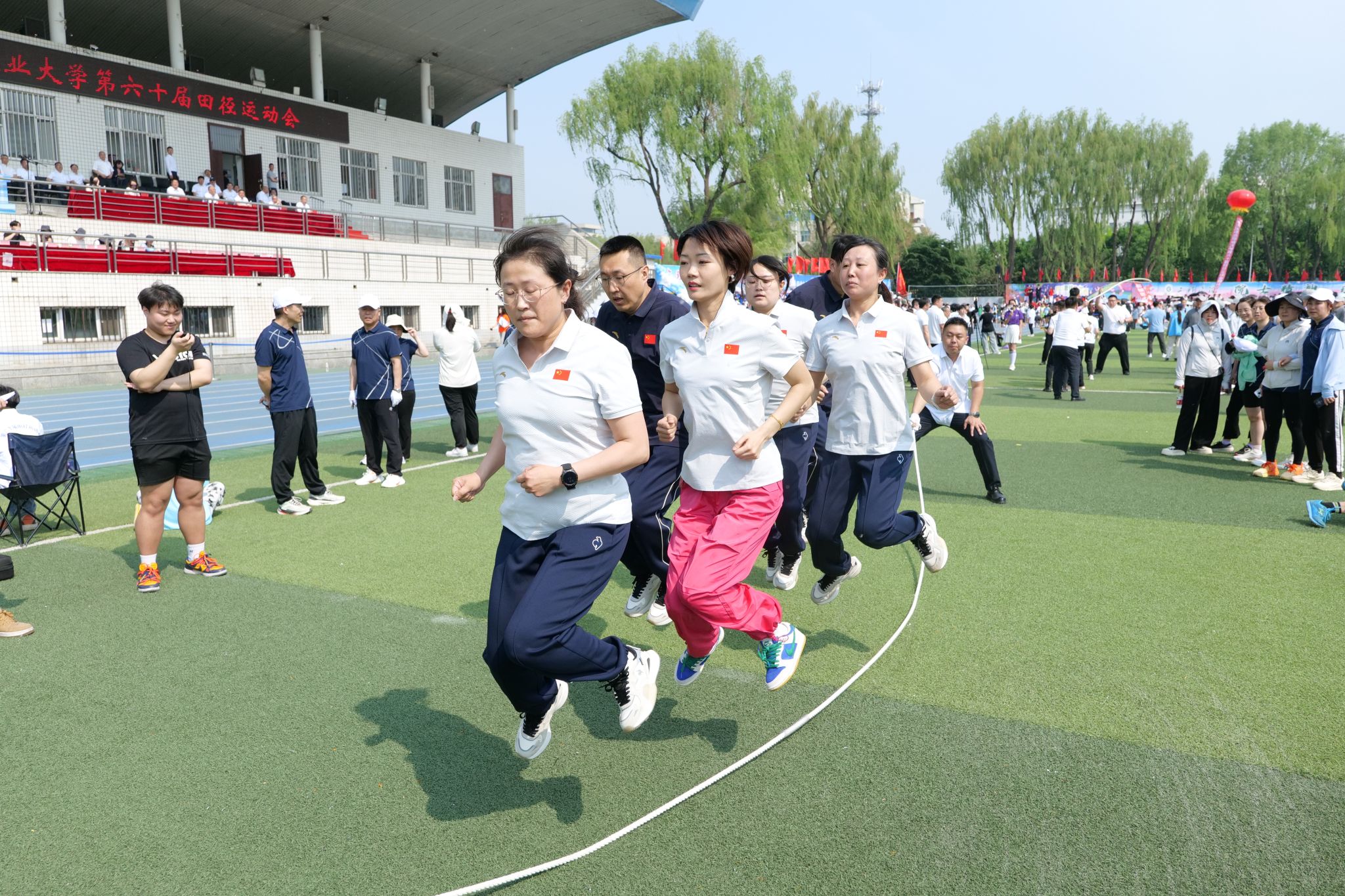 为响应国家全民健身的号召,进一步丰富教职工业余生活,促进教职工身心健康、提振精气神,营造积极向上、和谐融洽的校园文化氛围,5月28日至29日,由校工会主办,体育教研部、工会文体委员会承办的教职工集体跳绳比赛成功举办,来自全校16个单位共21支教职工队伍参赛。