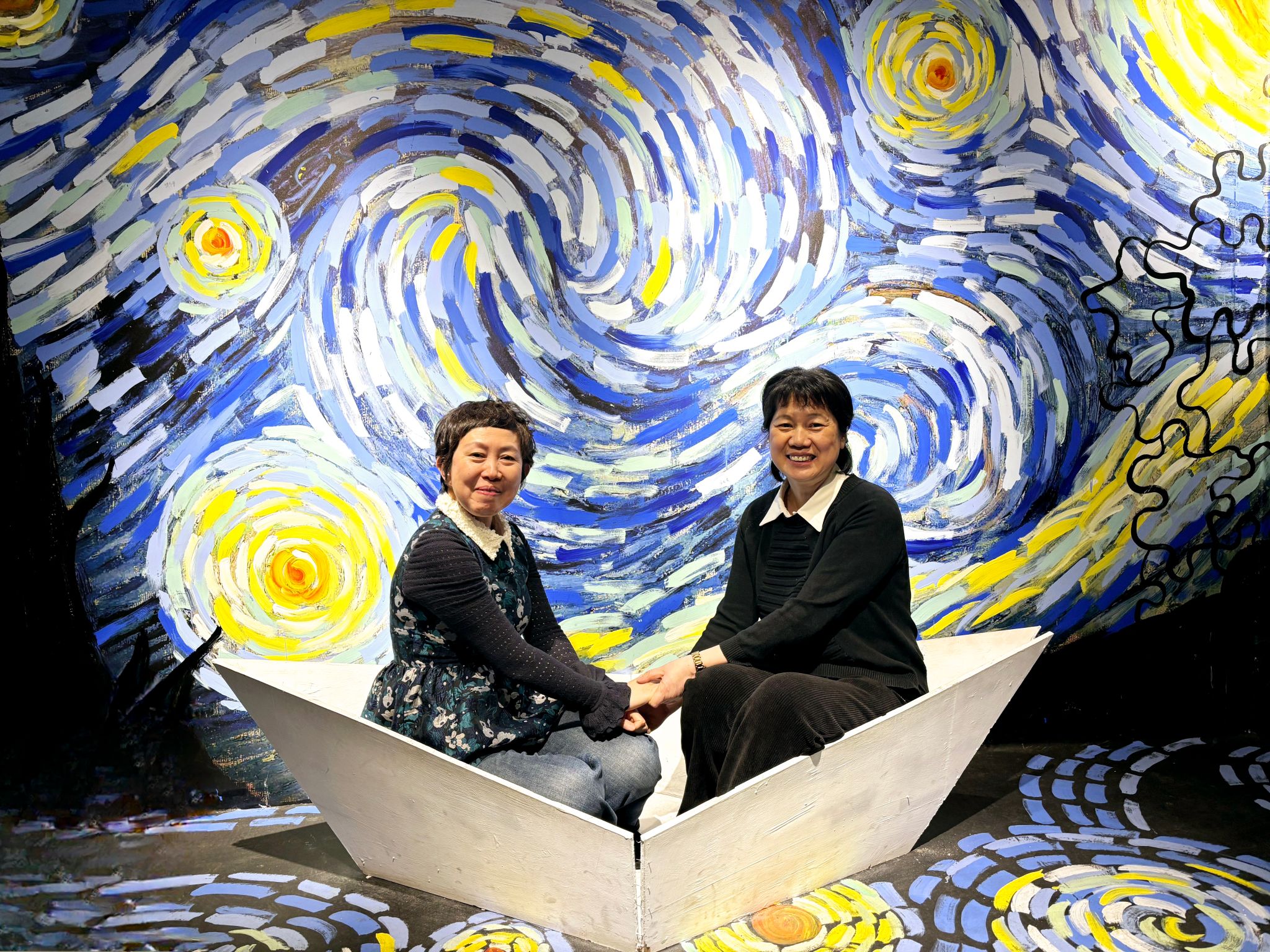 展馆内以梵高经典画作为灵感,结合现代光影科技与3D视觉设计,打造出《星月夜》《向日葵》等主题场景,让参观者仿佛步入画中世界。学院女教职工在工作人员的引导下开启了一场别具一格的艺术之旅,用镜头记录光影交织的梦幻瞬间,在油画场景与科技元素的交融中感受艺术魅力。