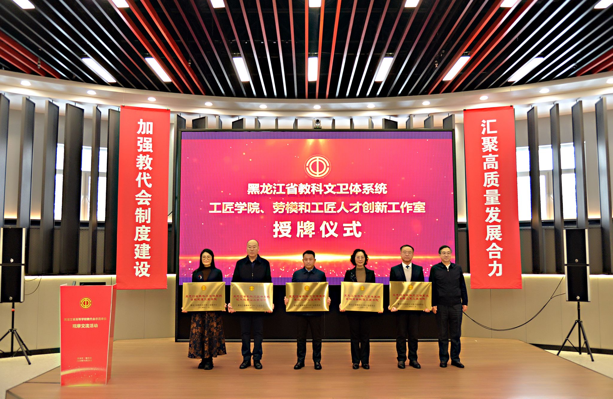 杨石穿以“发挥教职工代表大会作用,为学校事业高质量发展凝聚人心汇聚力量”为题,和与会人员进行了经验交流。哈尔滨工业大学、哈尔滨工程大学、东北农业大学、哈尔滨医科大学附属第一医院、黑龙江农业工程职业学院、黑龙江东方学院分别作典型发言。省总工会为全省教科文卫体系统劳模工匠人才创新工作室、工匠学院授牌。我校继续教育学院获得“全省教科文卫体系统工匠学院”,李茉创新工作室、董娜创新工作室获得“全省教科文卫体系统劳模工匠人才创新工作室”。