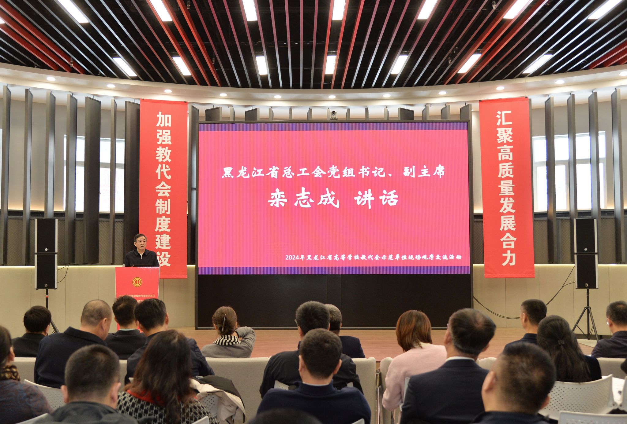 为加强教代会制度建设,汇聚高质量发展合力。11月29日,由省总工会主办,省教科文卫体工会、哈尔滨工业大学工会承办的2024年黑龙江省高等学校教代会示范单位现场观摩交流活动在哈尔滨工业大学举办,全省高校和市(地)总工会相关人员参加会议。省总工会党组书记、副主席栾志成出席会议并讲话,我校党委副书记贺景平、校工会副主席杨石穿参加交流活动,并作交流发言。